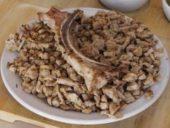 300 gr. Bistec de pco, jamón, tocino, chorizo y queso