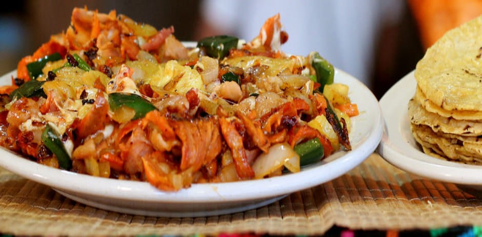 300 gr. Bistec de res, tocino, cebolla, poblano y queso