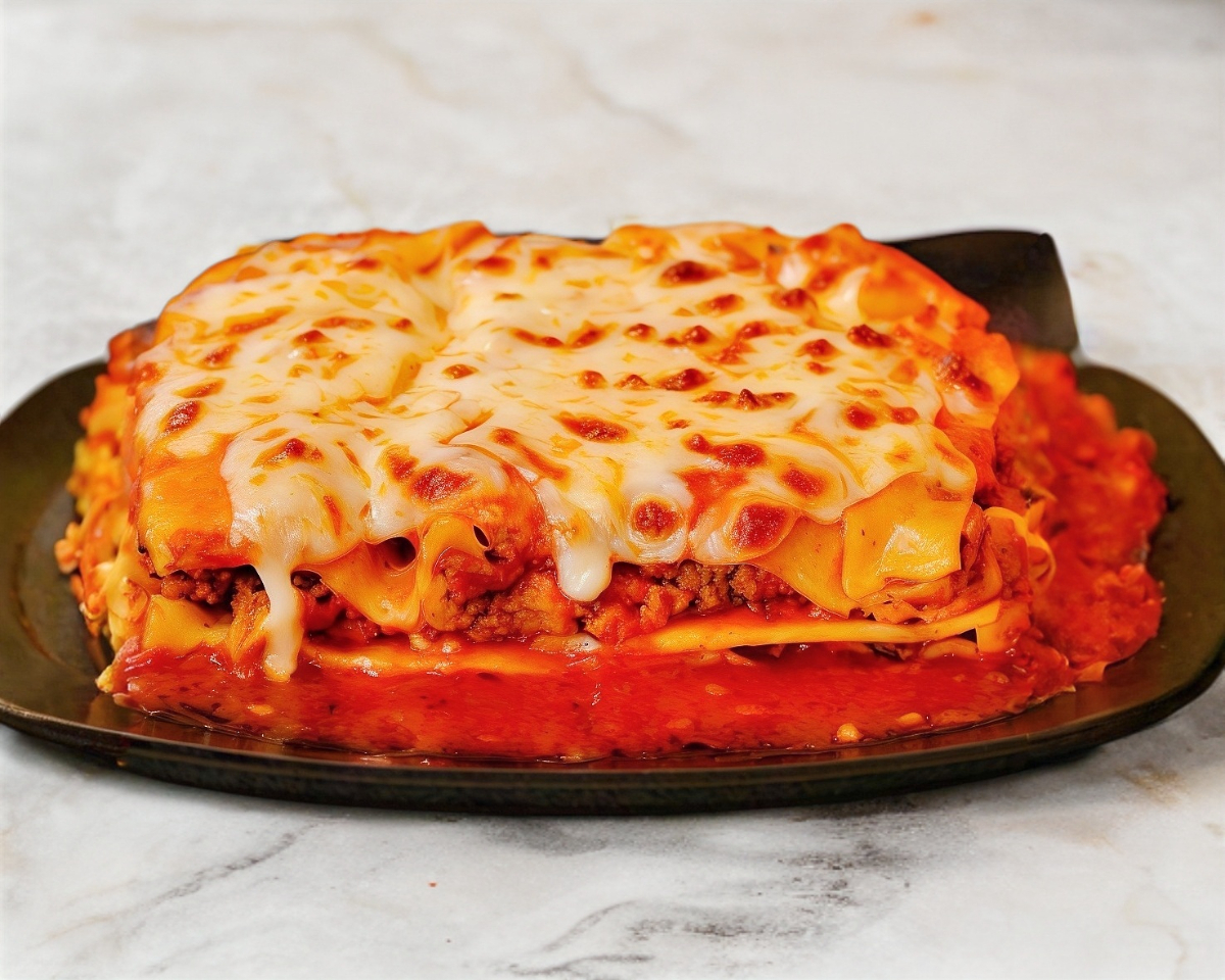 Gratinada al horno de leña y bañada con nuestra tradicional salsa italiana.