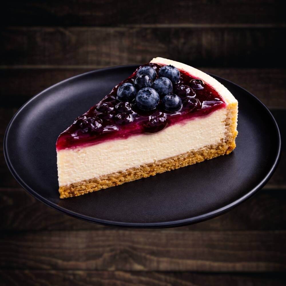 Cheesecake estilo Nueva York, elaborado con Philadelphia de alta calidad sobre una base de galleta, con textura ultra cremosa y horneado perfecto. Cubierto con compota de blueberry y fruta natural que aporta un balance ideal.