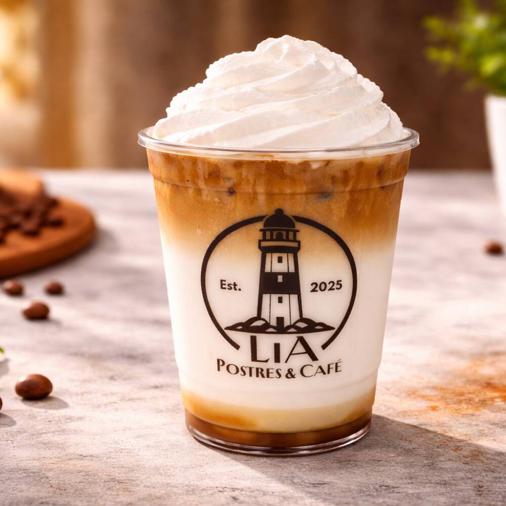 Latte frío cremoso con notas intensas de café y leche, coronado con suave crema batida y generoso drizzle de caramelo. Dulce, equilibrado y refrescante en cada sorbo.