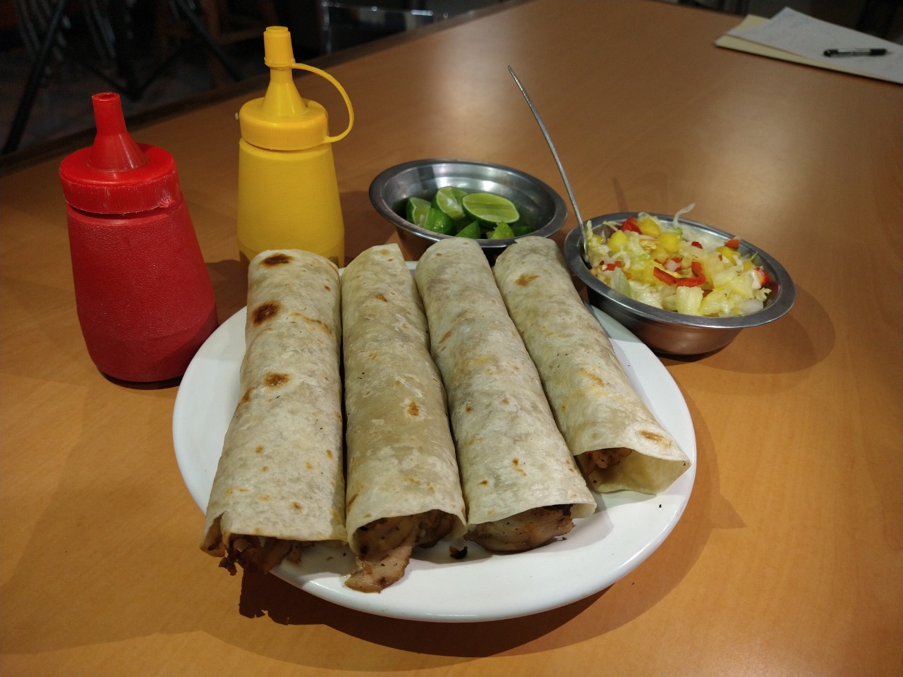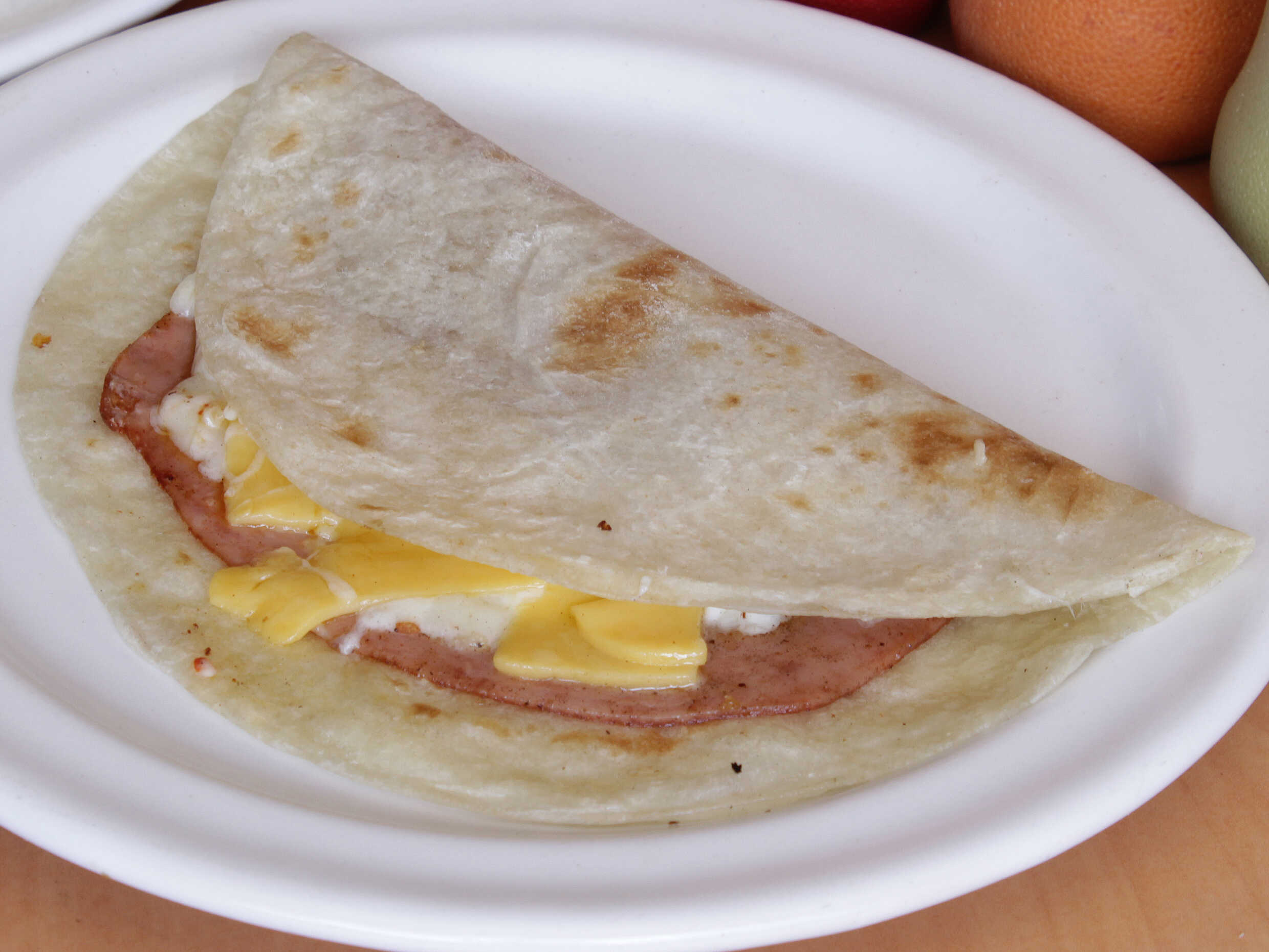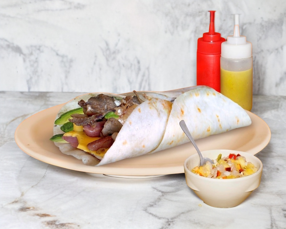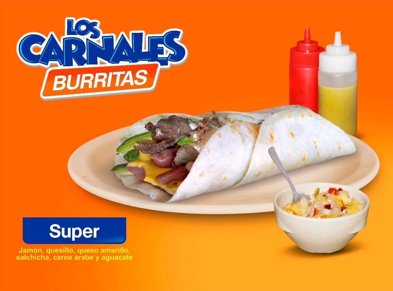 Burrita sensilla incluye jamon, queso, carne arabe y salchicha inclye salsas