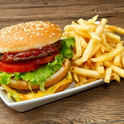 Pan, carne de res, lechuga, jitomate, cebolla caramelizada y nuestro sazonador secreto