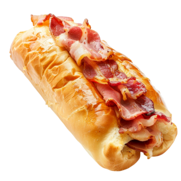 Rico pan artesanal, salchicha grande,tocino, y vegetales