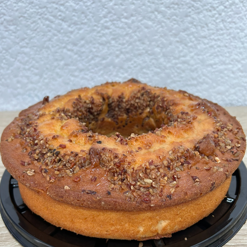 Delicado panqué artesanal de textura suave y húmeda, enriquecido con nuez tostada que aporta un sabor profundo y elegante, perfecto para disfrutar en los mejores momentos.