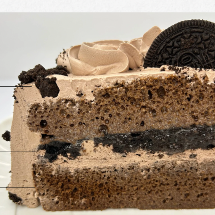 Es un pastel hecho con un bizcocho esponjoso sabor chocolate bañado con un jarabe de tres leches sabor chocolate, relleno con una crema de ganache de chocolate y galleta oreo; cubierto con crema de chocolate al contorno ganache escurrido.