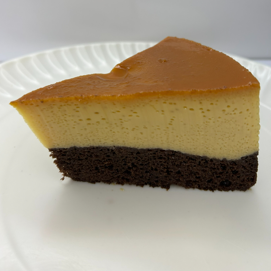 Delicada rebanada de flan napolitano de textura cremosa y suave, cubierta con un caramelo dorado que aporta el equilibrio perfecto entre dulzura y elegancia. Un postre clásico que se disfruta en cada cucharada.
