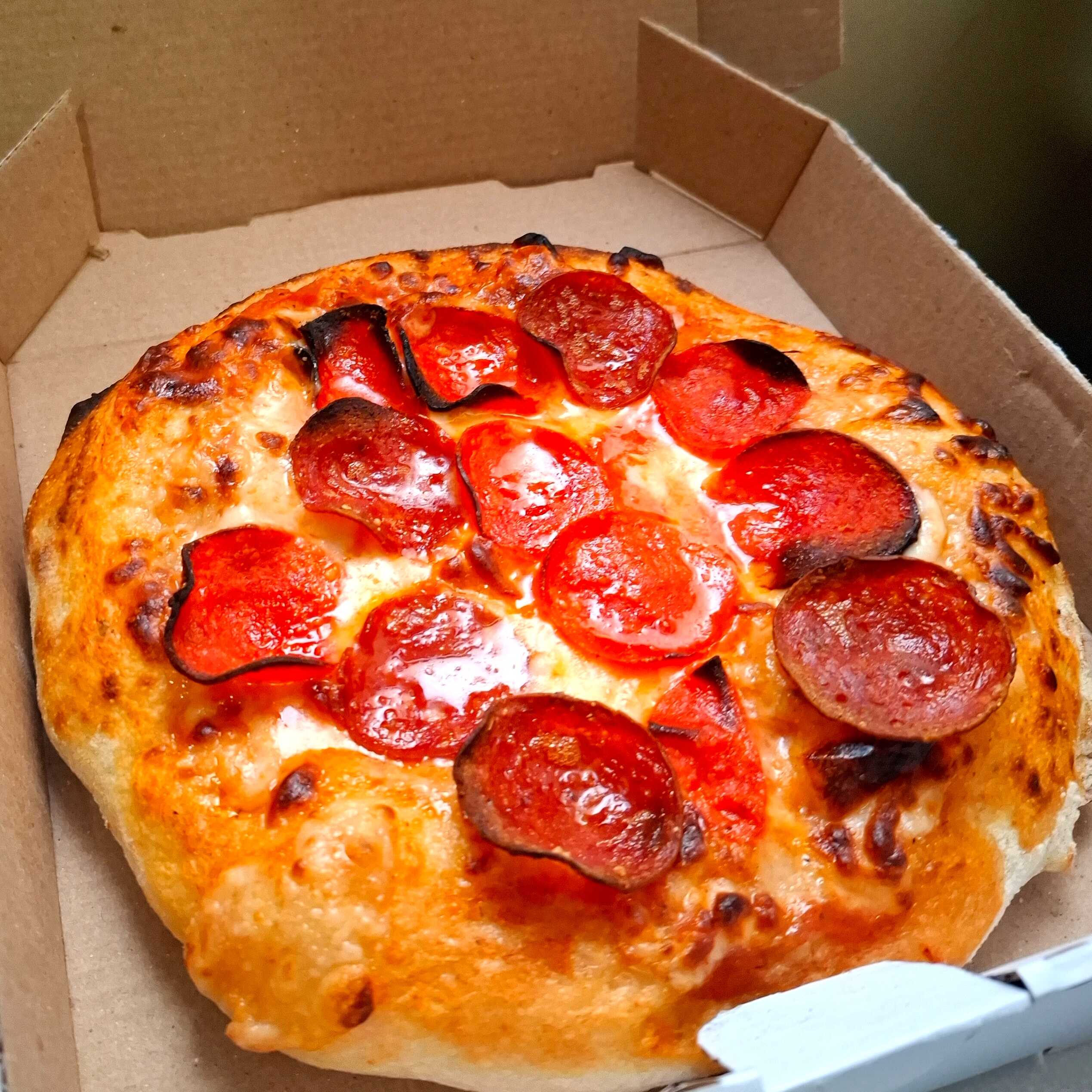 Pizza de masa madre, salsa casera, pepperoni y mix de 4 quesos de la casa.