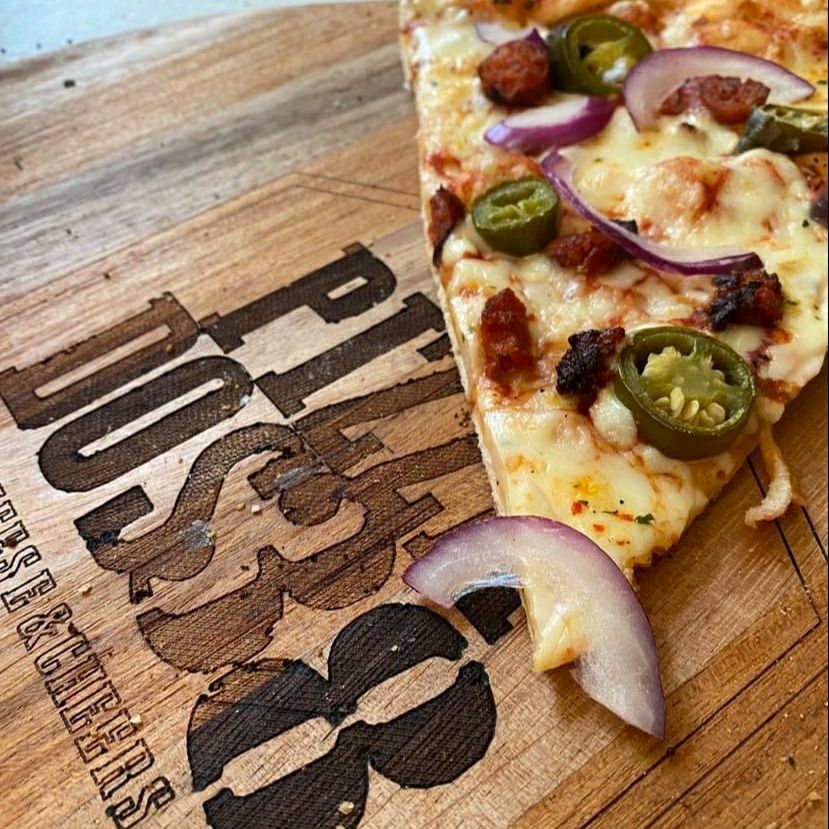 Pizza de 35 cm de diametro con 8 rebanadas.Salsa de la casa,mozzarella,chistorra,cebolla y jalapeño