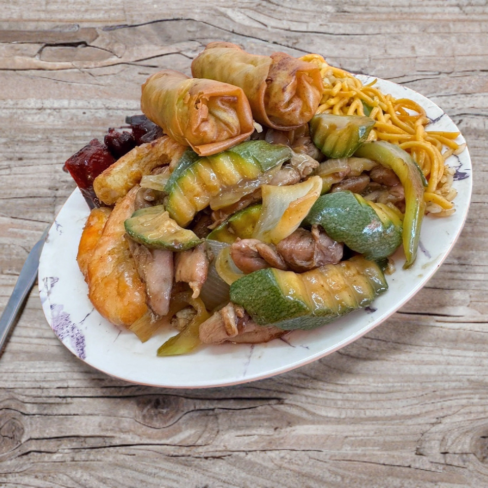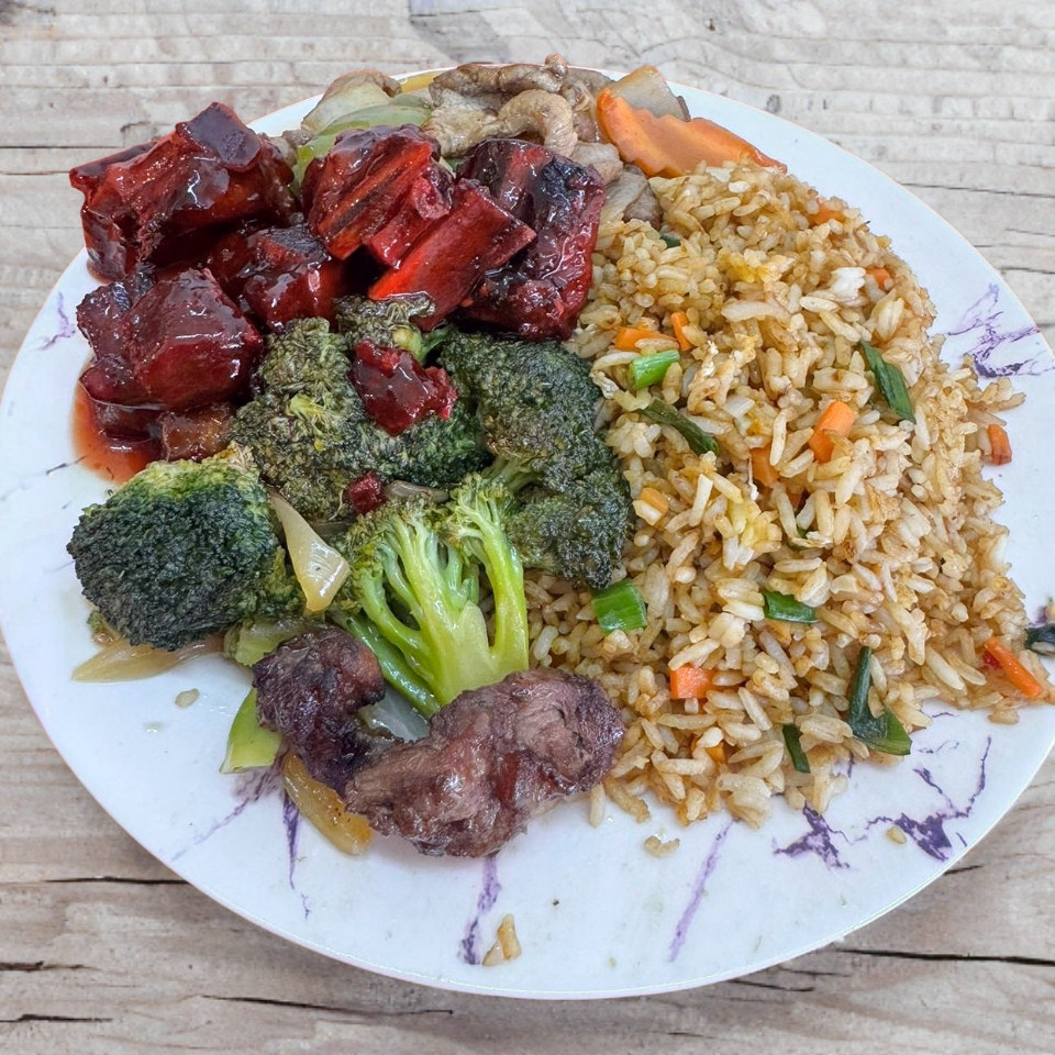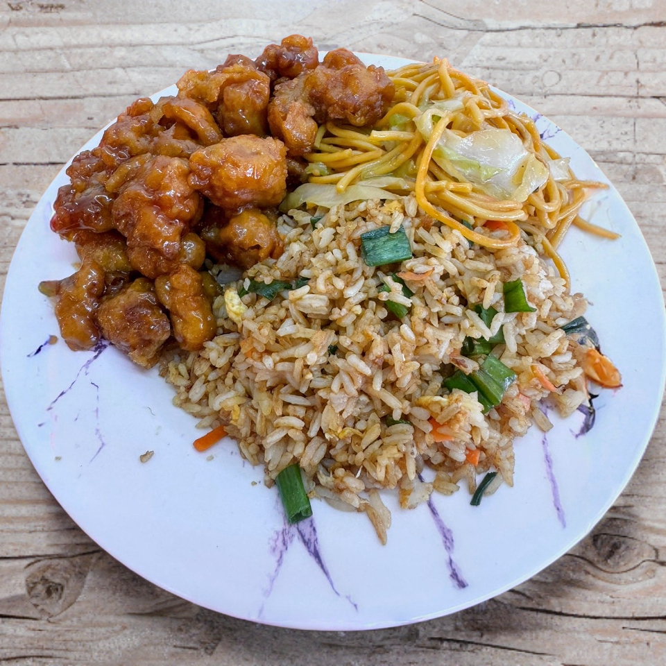 Una opción abundante y sabrosa para quienes disfrutan de probar diferentes platillos en una sola comida. Al combinar tres guisados sobre arroz o spaghetti, te aseguras una explosión de sabores orientales, con variedad de texturas y salsas.