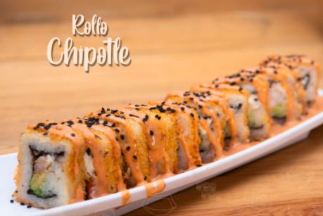 Pd. Camarón, aguacate y Philadelphia Pf. Empanizado y aderezo chipotle y ajonjolí. Porcion de 230 grms