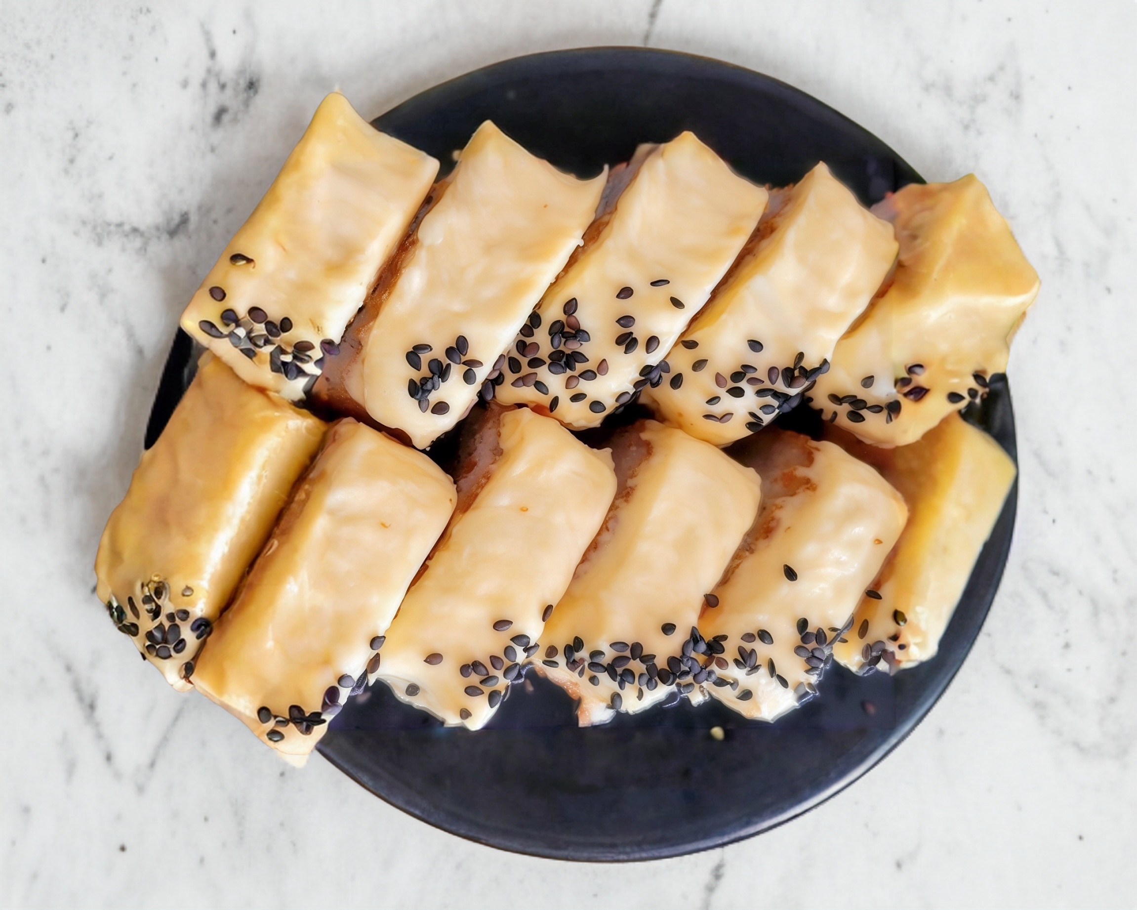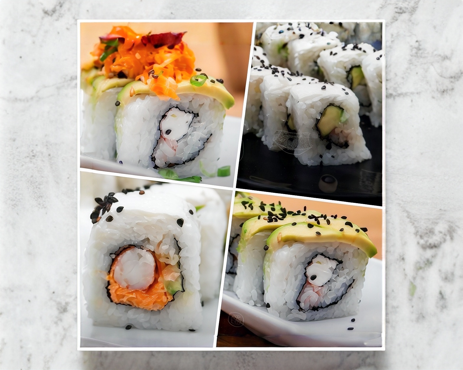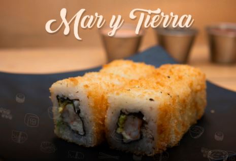 Pd:Camarón, Res y aguacate Pf:Empanizado, philadelphia, tocino, cebollin y ajonjolí. Porcion de 230 grms