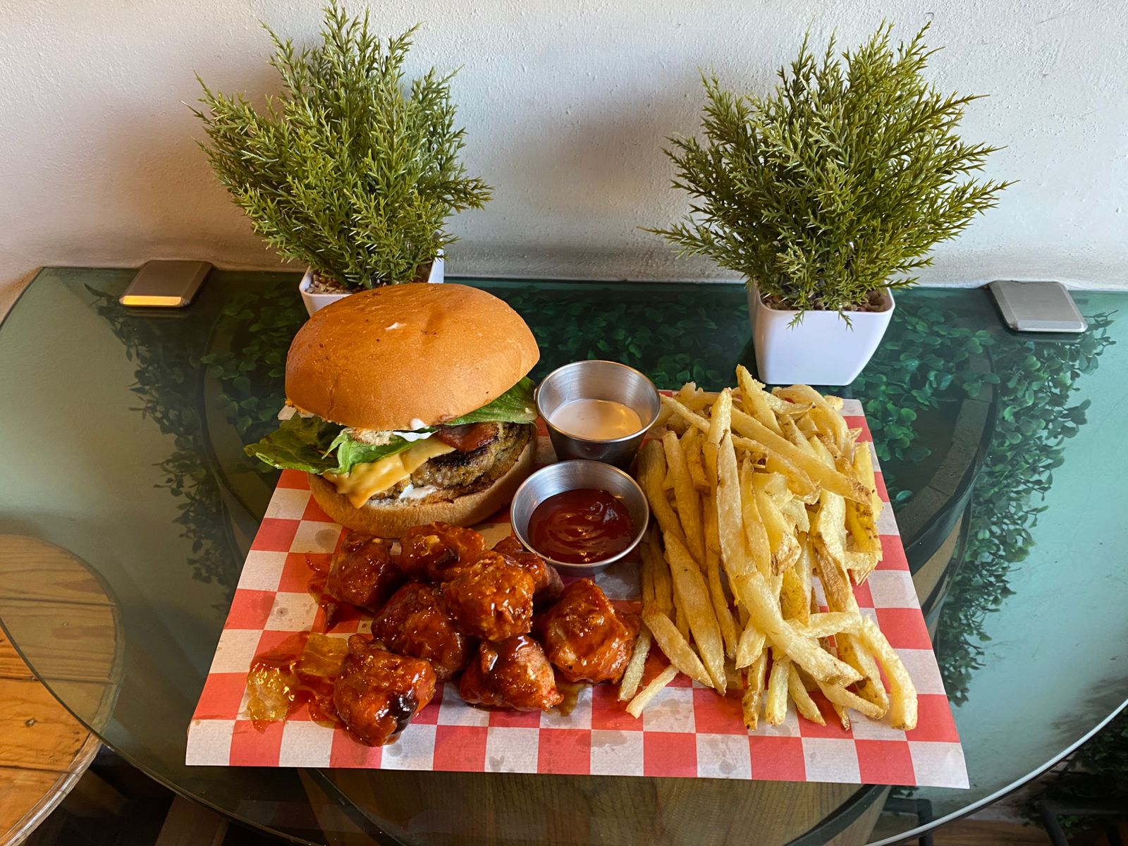 Hamburguesa mas Boneless y Papas