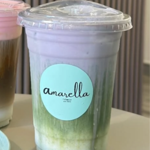 Matcha latte ceremonial frío con cold foam de taro-lavanda 16 Oz