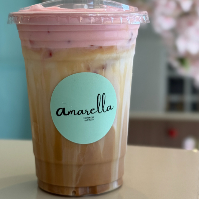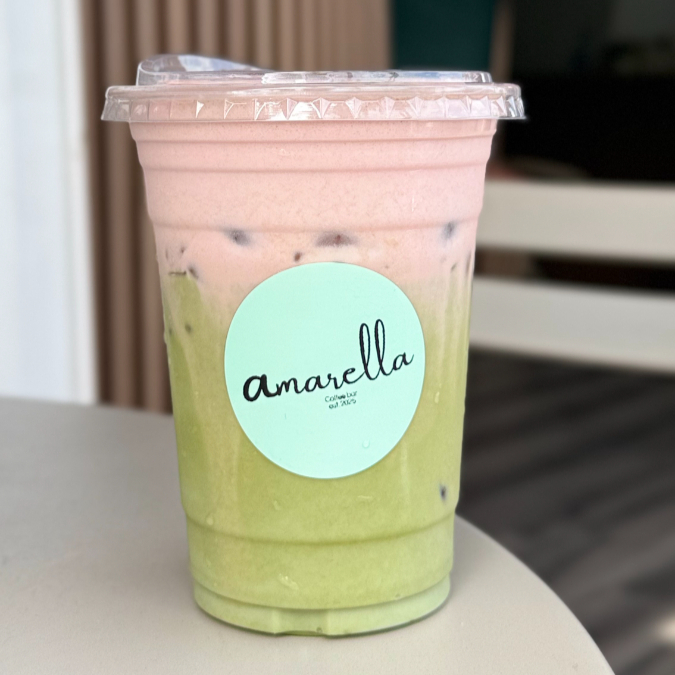 Matcha latte ceremonial frío con cold foam de fresa 16 oz
