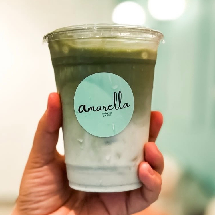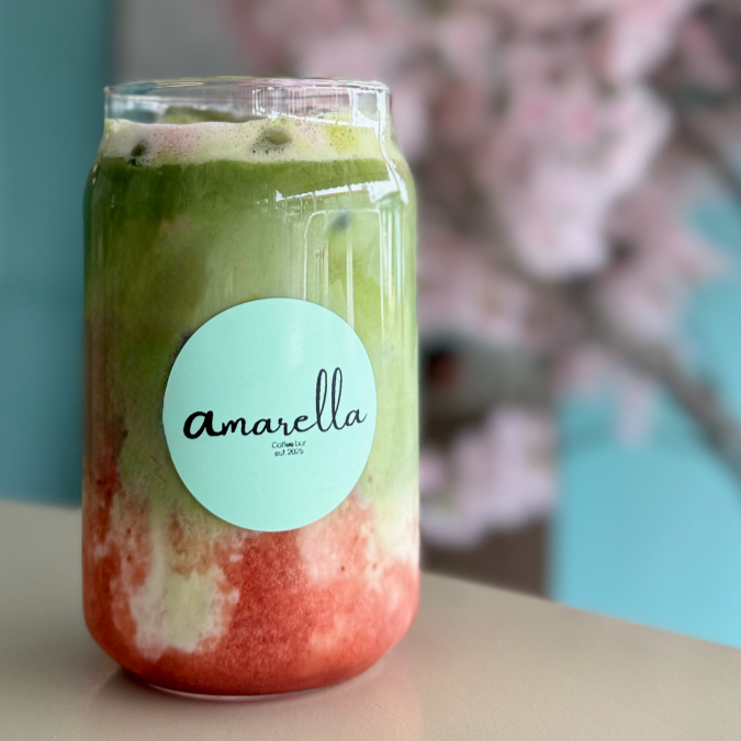 Matcha latte ceremonial frío o caliente con mermelada casera de fresa 16 Oz