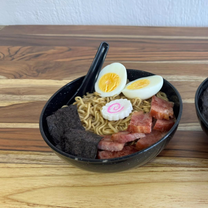 Ramen de cerdo con huevo, naruto, alga y fideos instantaneos