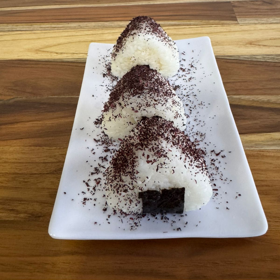 3 bolas de arroz con mayonesa y proteína a elegir.