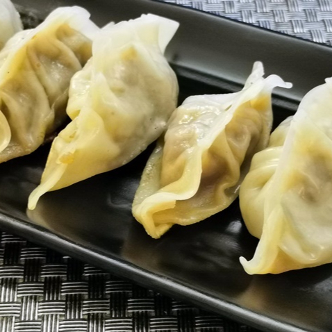 5 gyozas (mini empanadas) rellenas de carne de cerdo y verduras