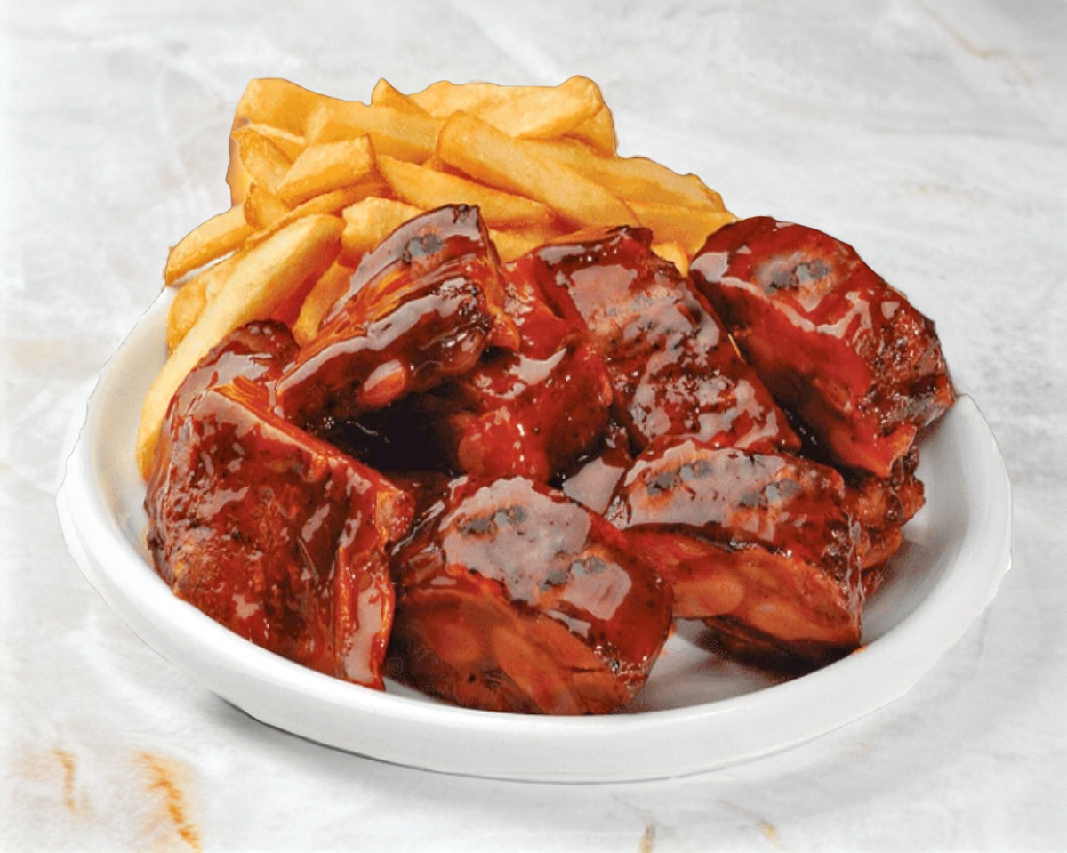400 gr de costilla mas 200 gr papas francesas