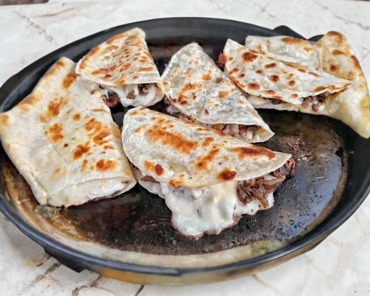 ¡Dale una oportunidad a nuestra quesadilla! Rellena con jugosa carne asada y un sabor único que te encantará. ¡Ven a conocerla!.