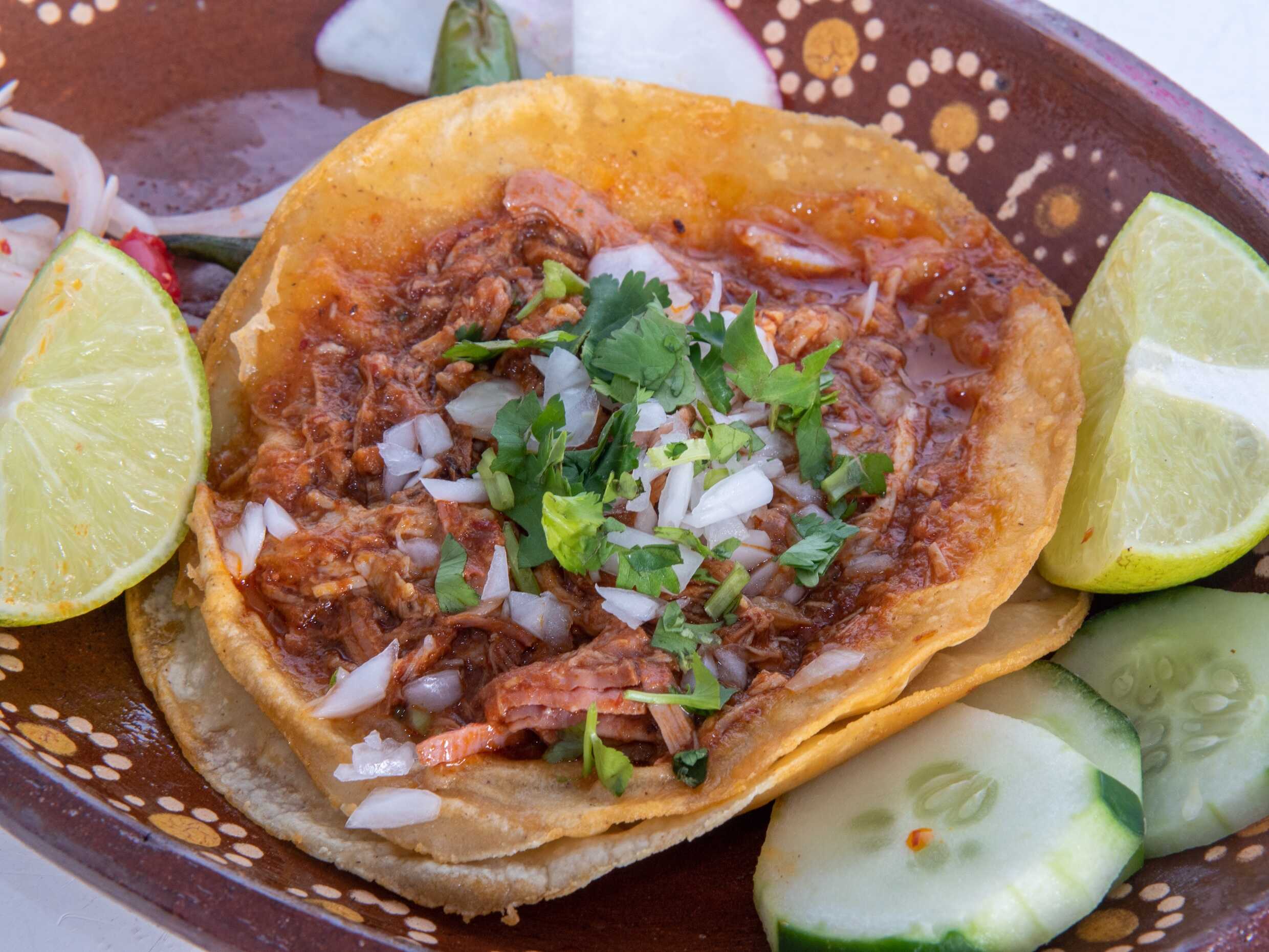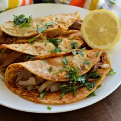 Elaborado con tortilla 100 % de maiz, exquisita birria, con queso mozarrella a la plancha, cebolla, cilantro y ricas salsas.