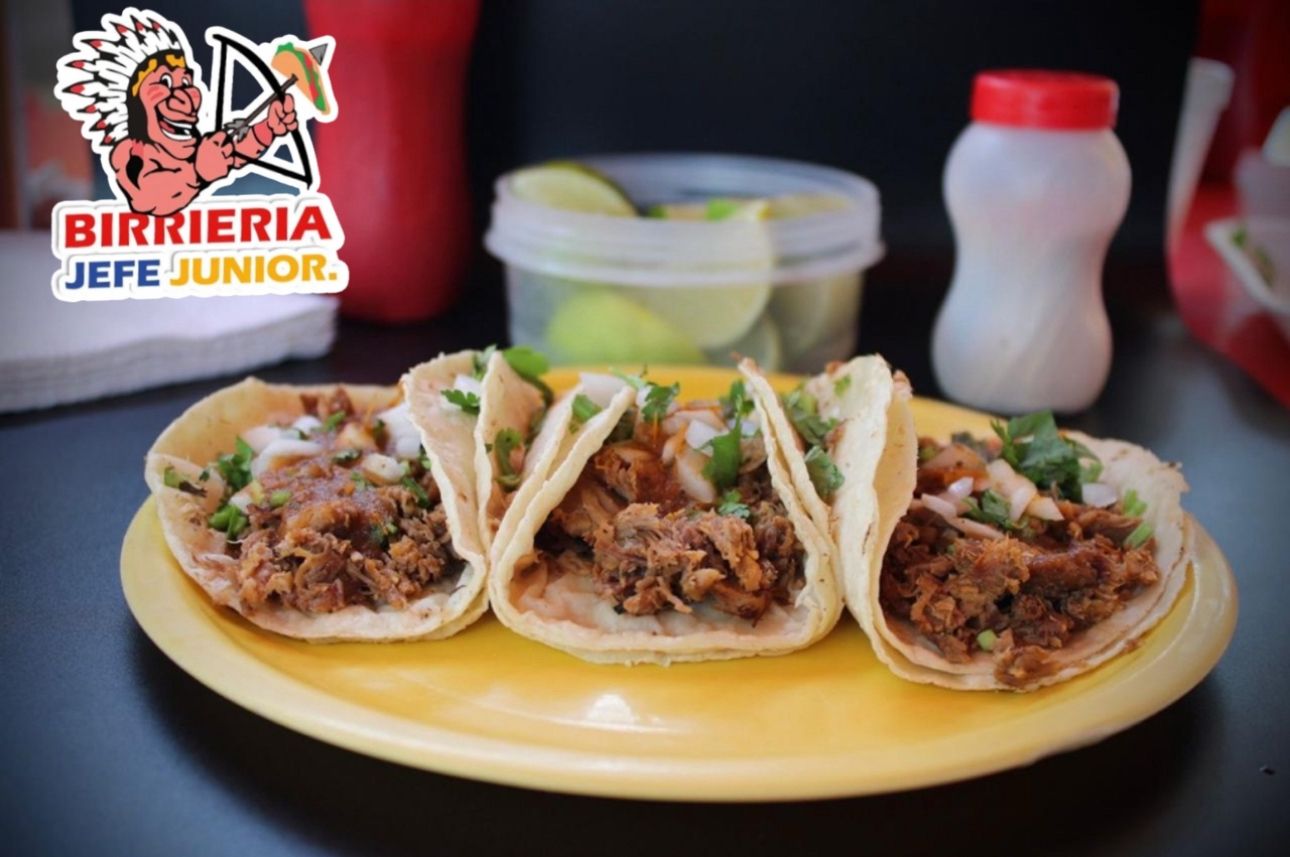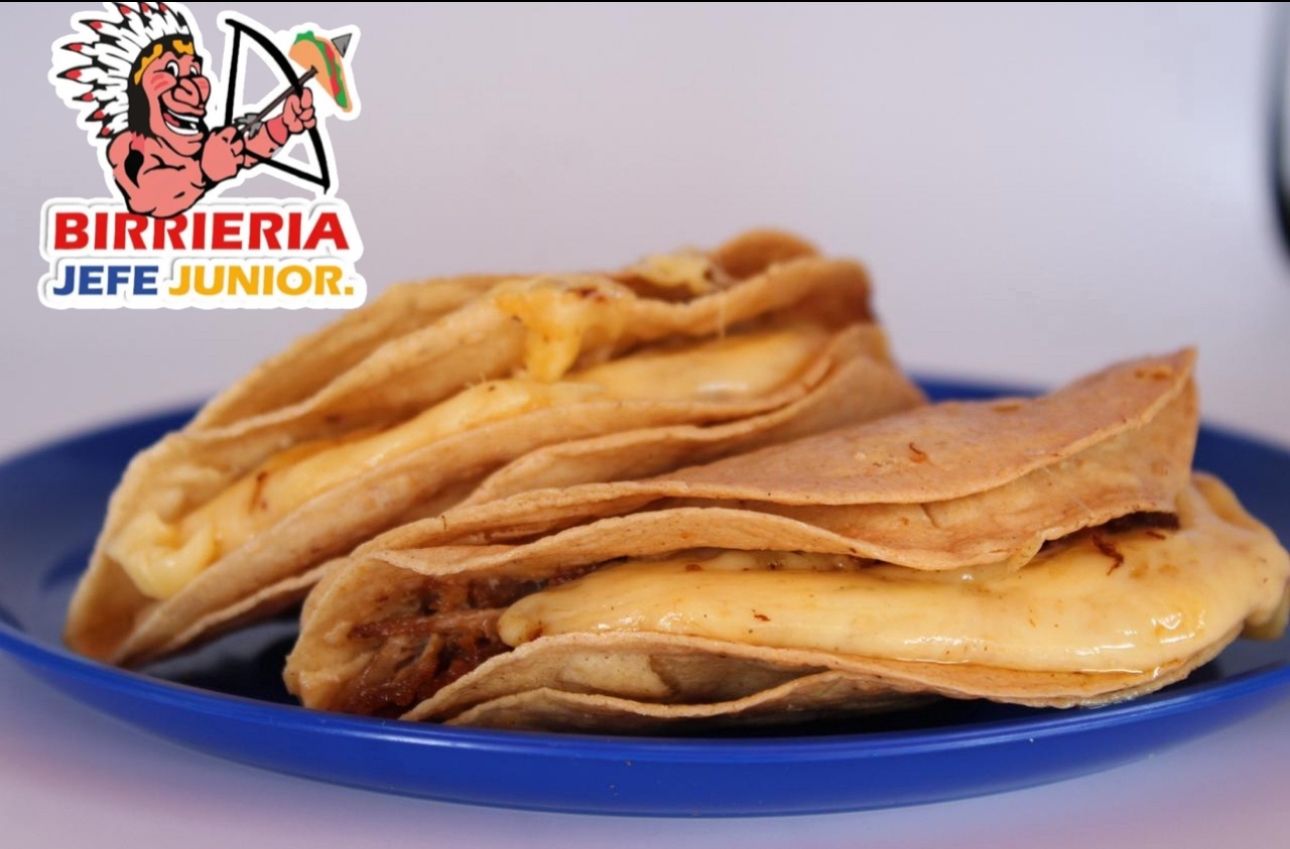 Tacos de birria con queso fundido.