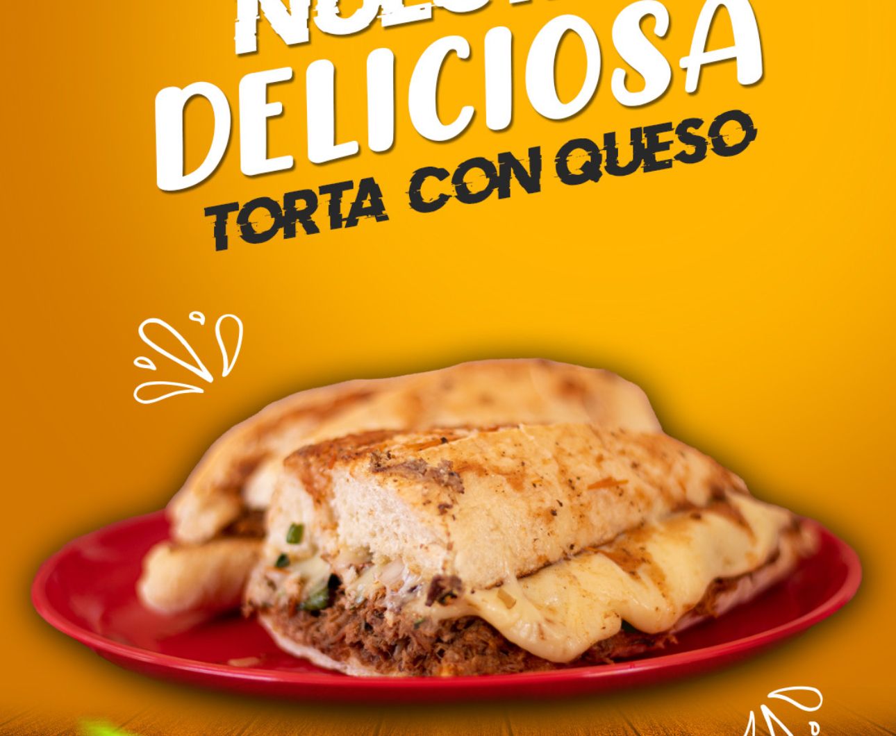 Torta de birria con queso derretido.
