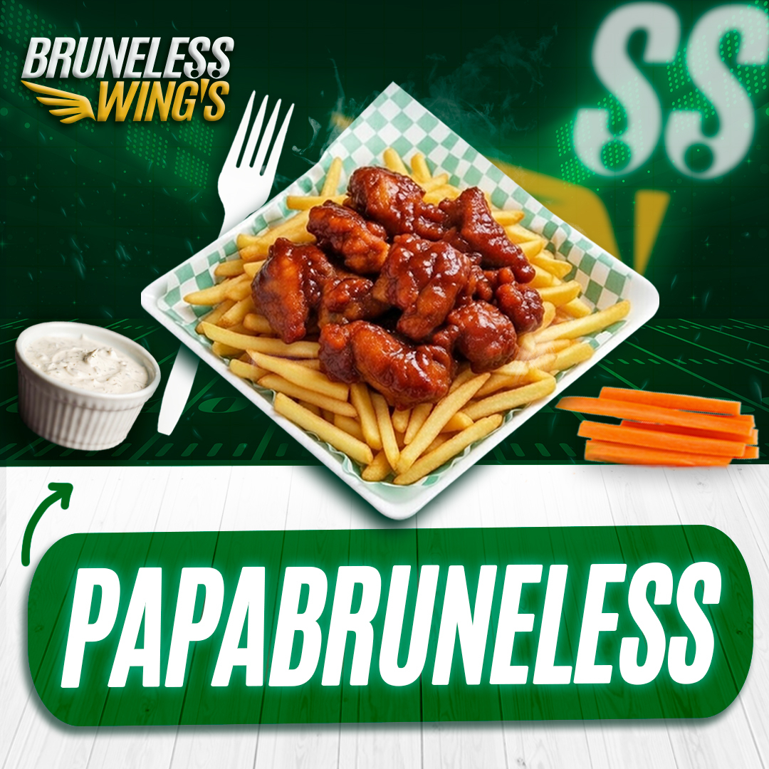 1Kg. De Boneless crujientes, jugosos y bañados en tu salsa favorita. Incluye aderezo para el toque final, y toda la actitud que solo Bruneless Wing´s te da.