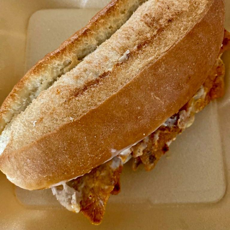 Bolillo grande. Con carne asada y chorizo casero. Cilantro, cebolla, limon y salsas aparte.