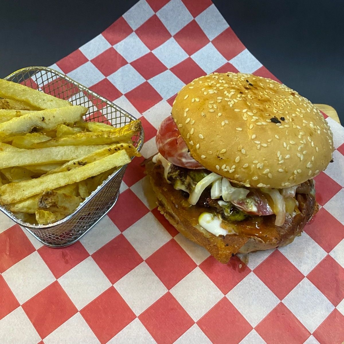(2 Carnes de 110gr, Tocino, Camaron Y Q. Asadero)