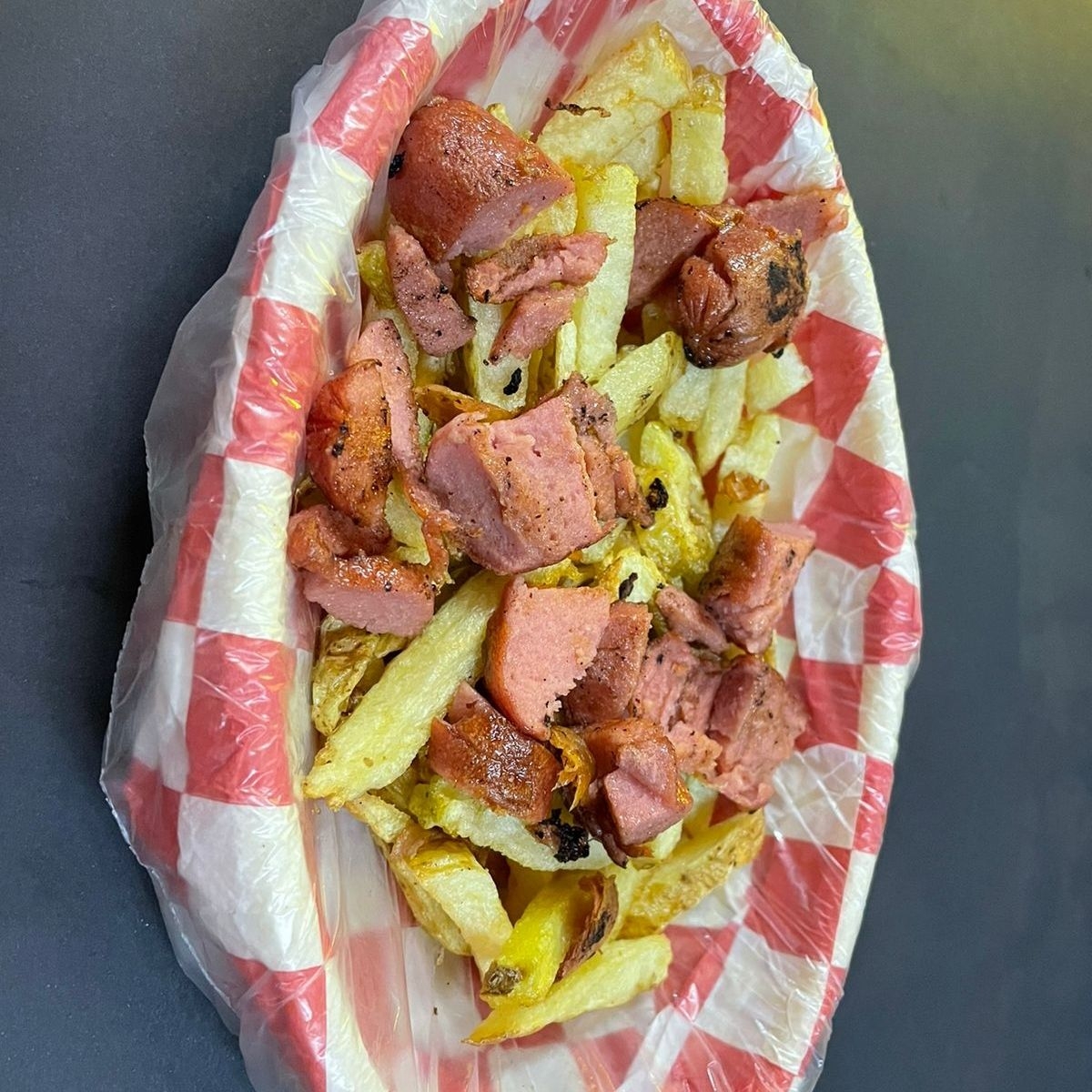 Salchipapas con queso