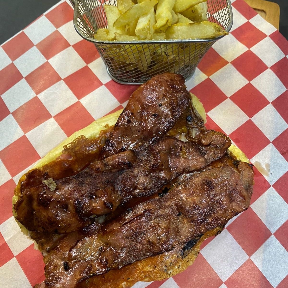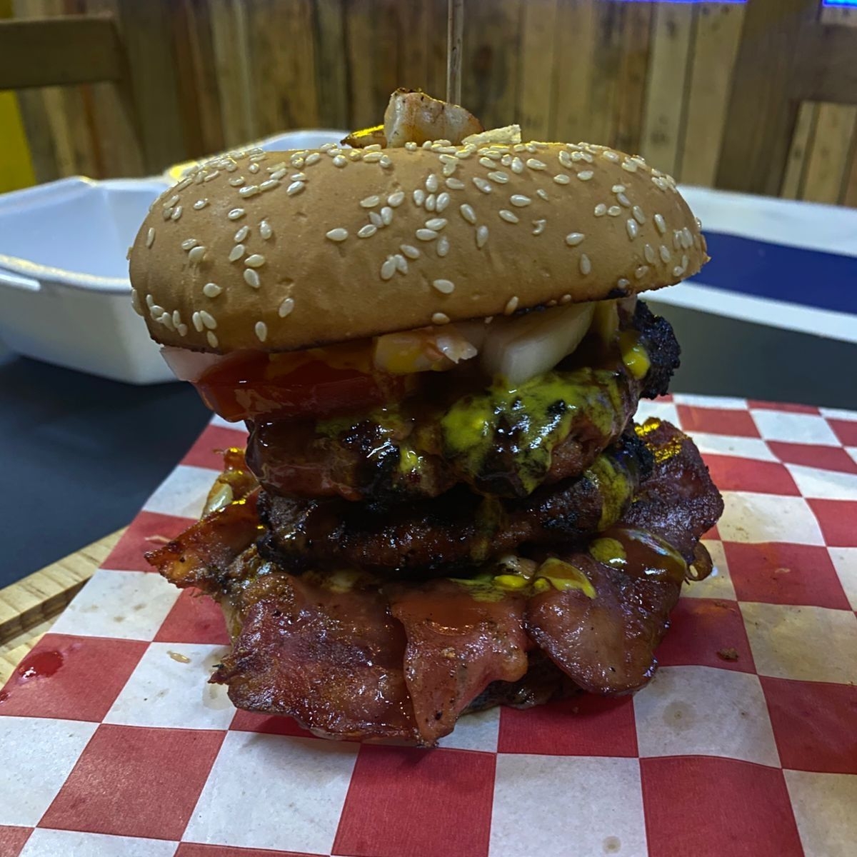 Carne 110 gr, Camaron, Pimiento Morron, Tocino Y Q. Asadero