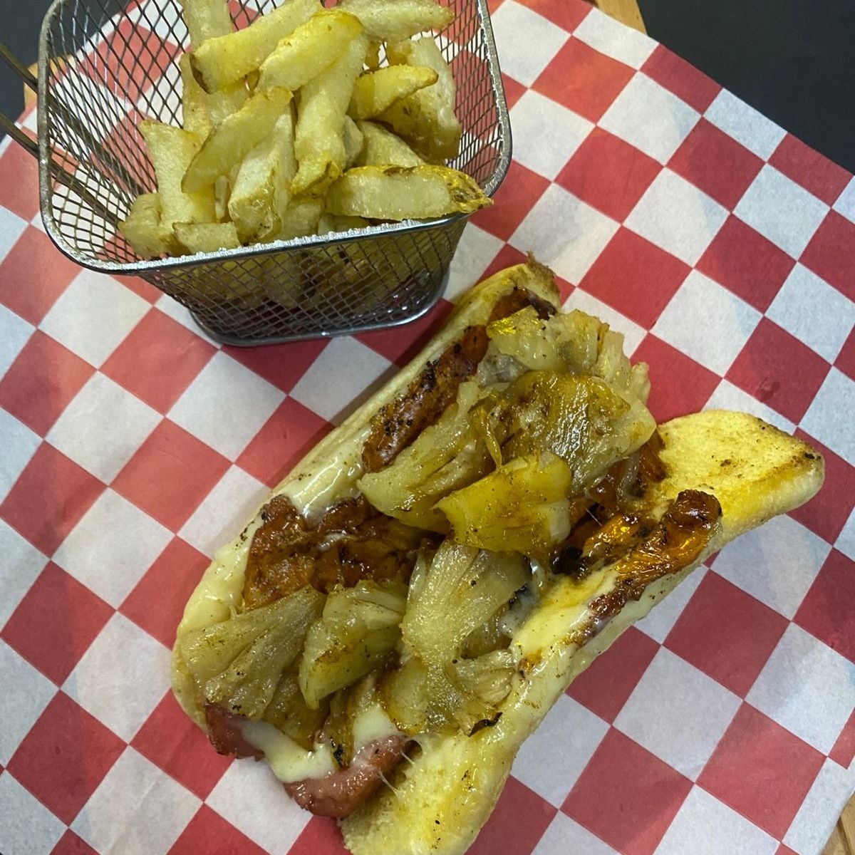 (salchicha, piña y Q. asadero)