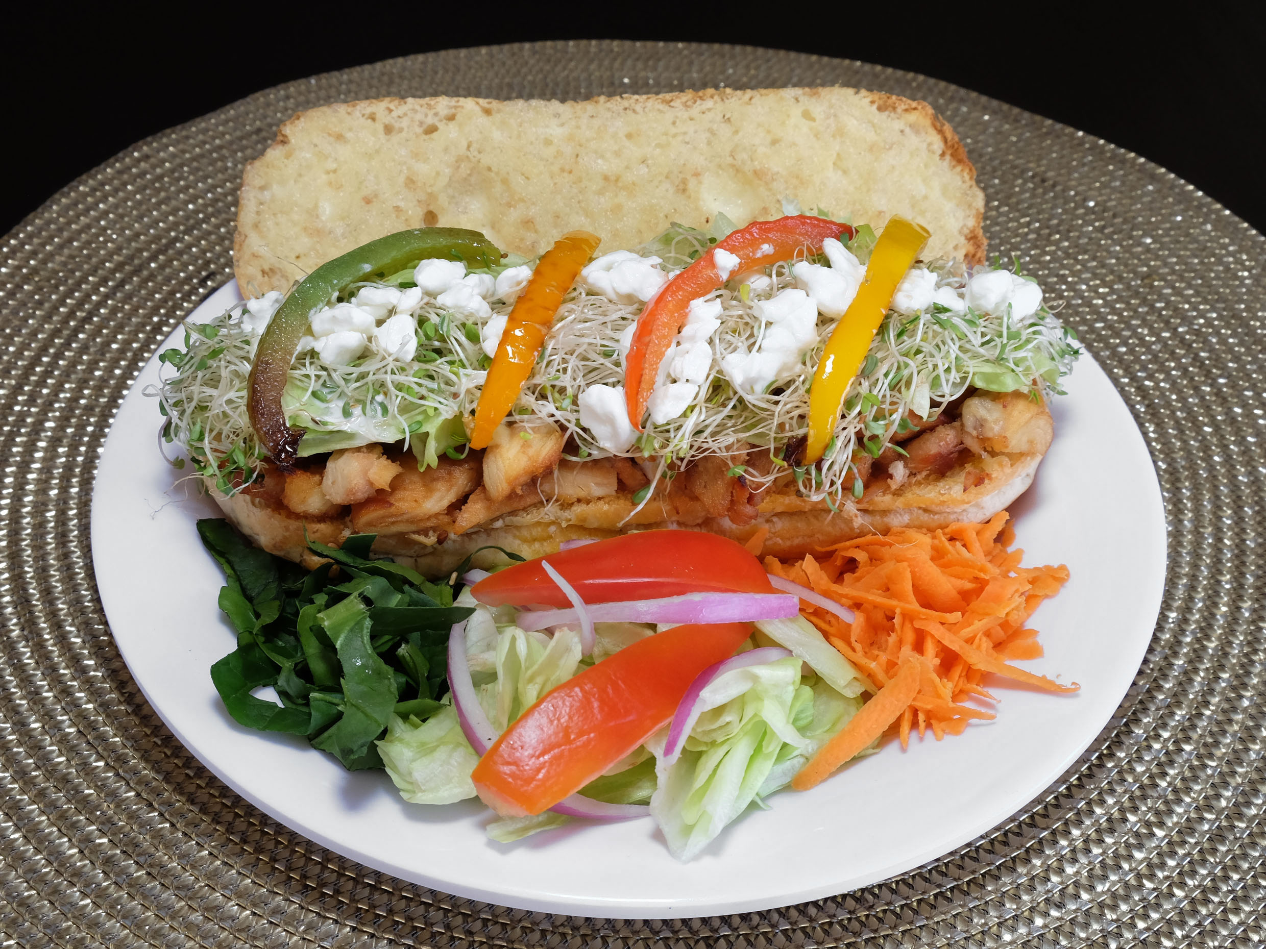 pan integral,pechuga,camaron,romana,jitomate,cebolla,germinado,aguacate,aderezos de la casa.