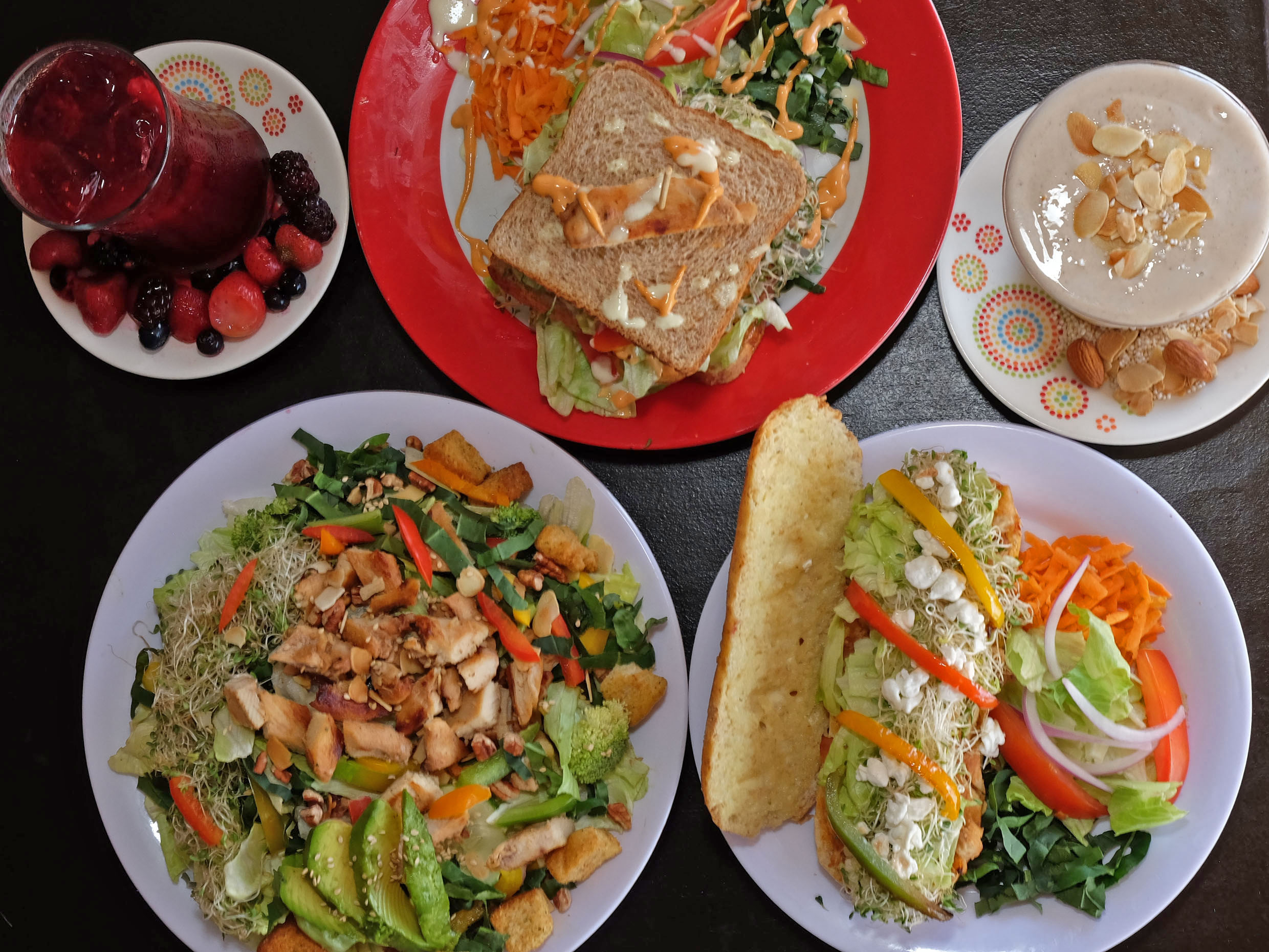 pechuga marinada,lechuga,germinado,cebolla,jitomate,aguacate,aderezos de la casa.