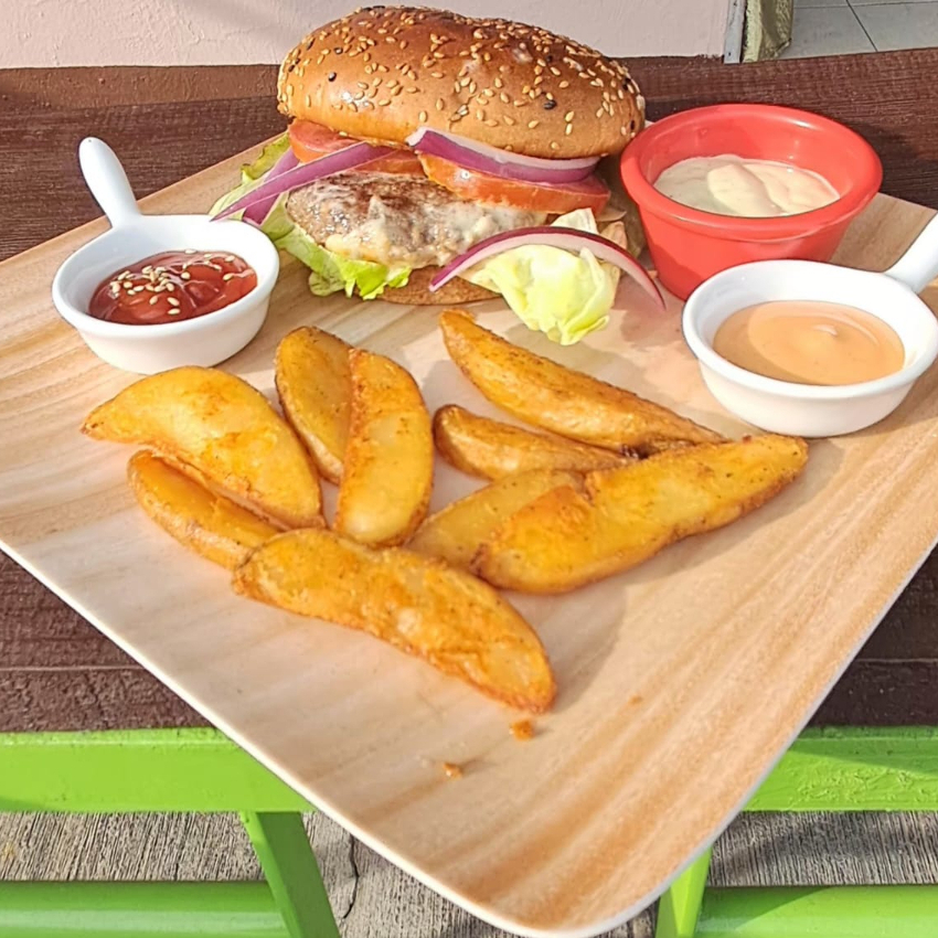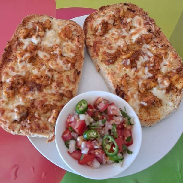 200gr de pechuga marinada,queso cheddar,aderezos de la casa acompañado de salsa mexicana