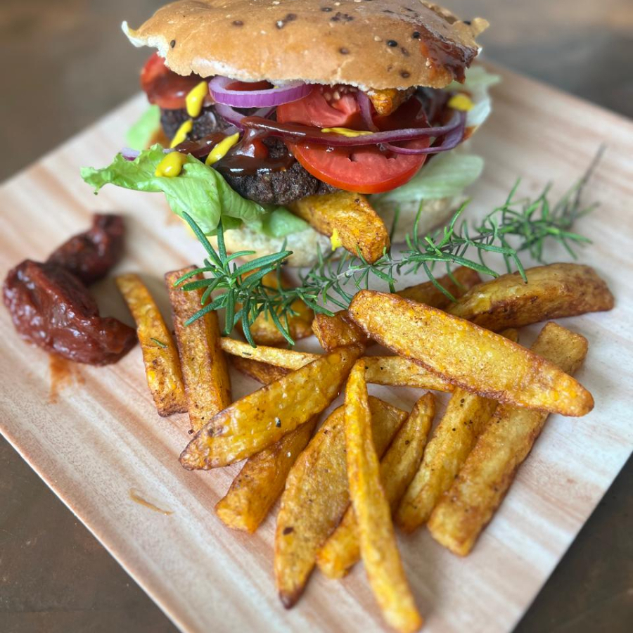 150gr de medallon de atun queso cheddar, aderezo de la casa acompañado de salsa a la mexicana