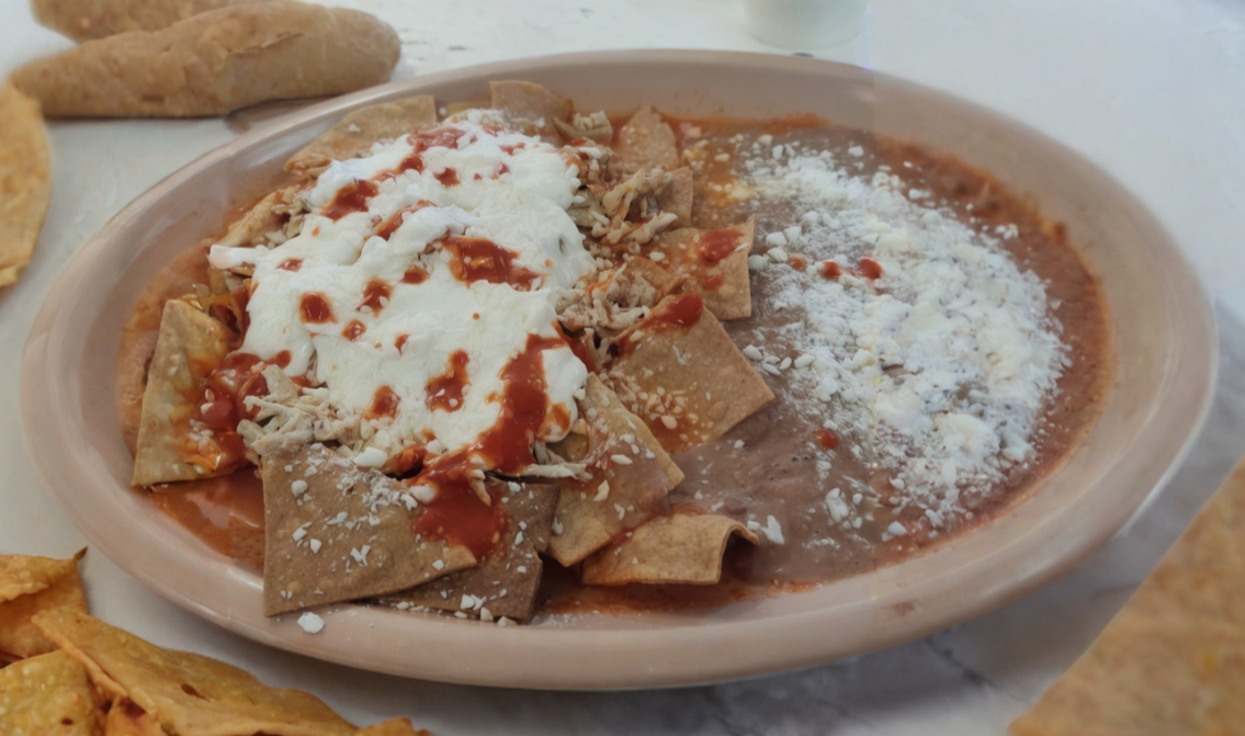 Los tradicionales chilaquiles de Turismo, con su salsa única