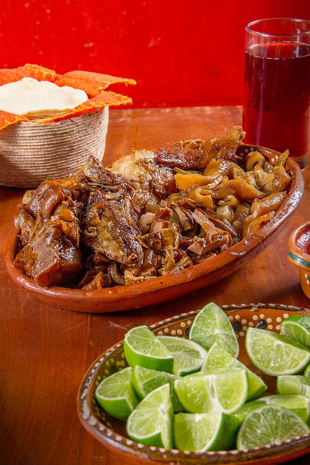 1/2 Kilo de carnitas de carne de (pierna, espaldilla, costilla y falda) incluye salsa suave, picante, cebolla con habanero y limones.