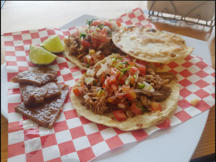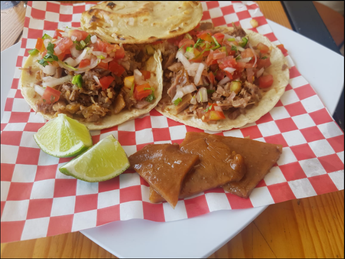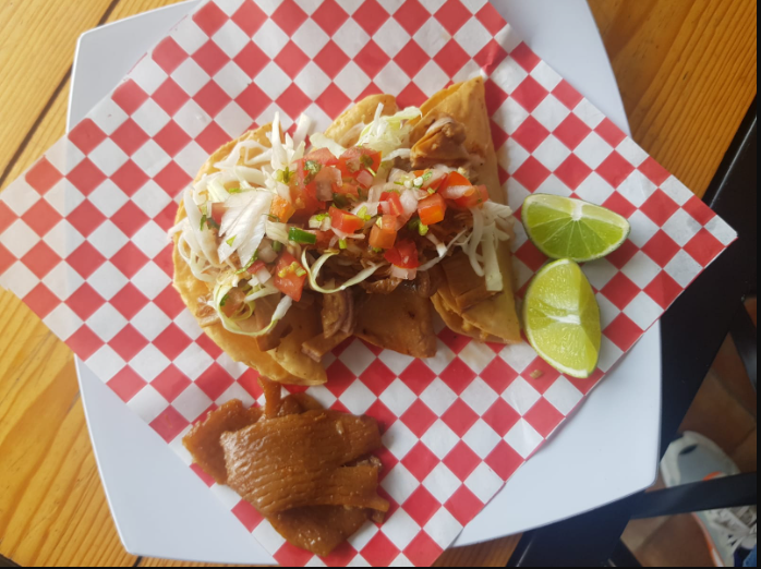 Carne, buche,cuero, tortilla y salsas, opcional tortillas doradas según existencia