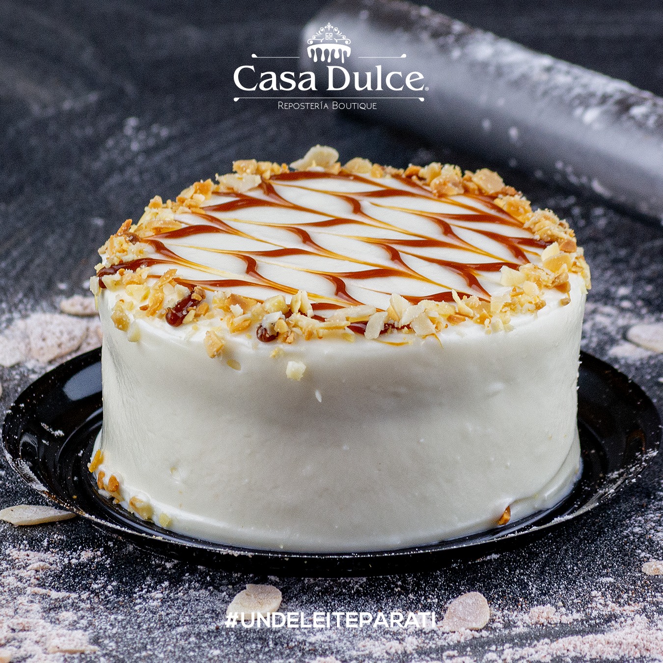 Tradicional pan de vainilla bañado con 3 leches y betún de queso crema.