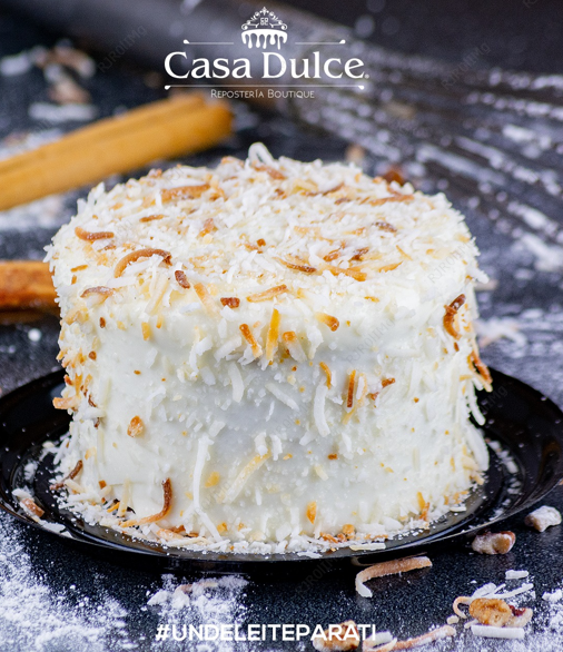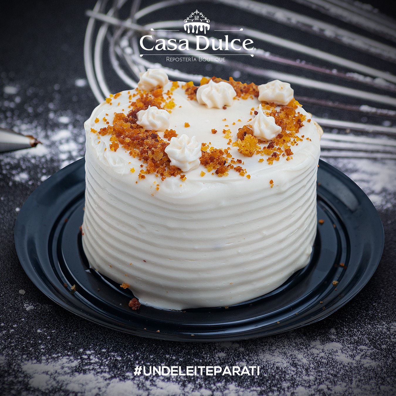Tradicional pan de vainilla, bañado con 3 leches y betún de queso crema.