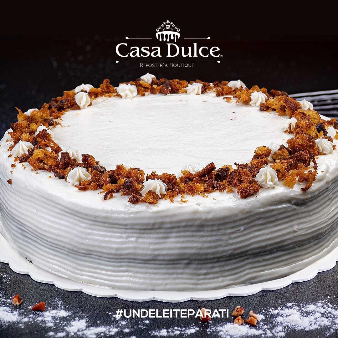 Pan de zanahoria con nueces piña y coco relleno y betún de queso crema.