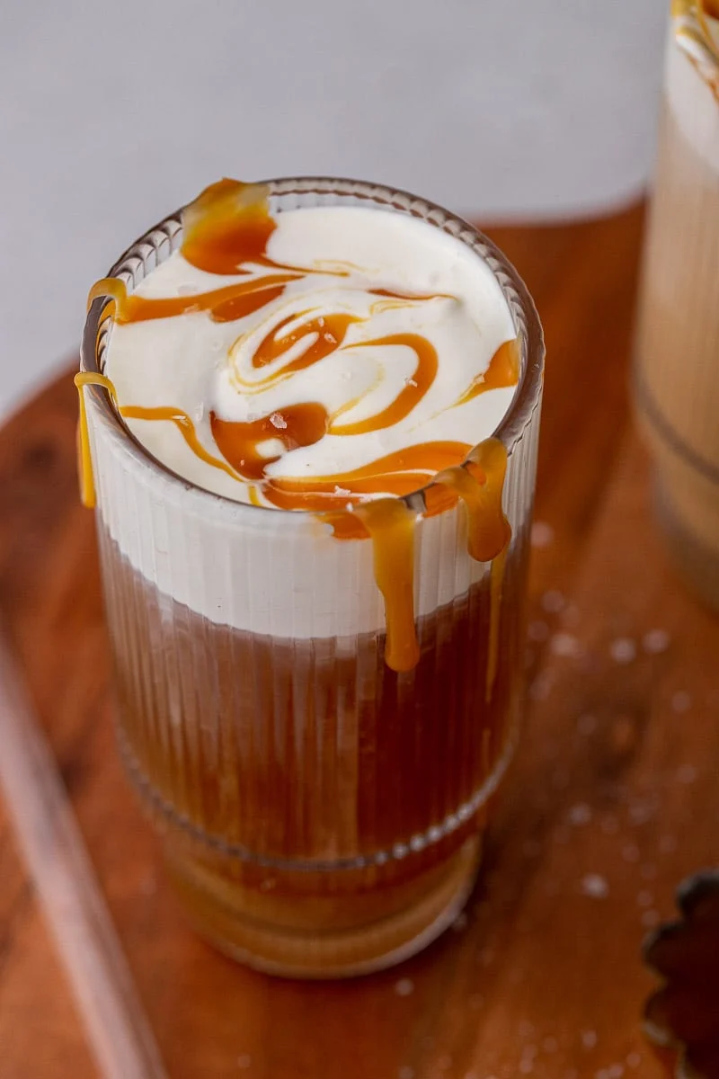 Leche, vainilla, espresso y salsa de caramelo