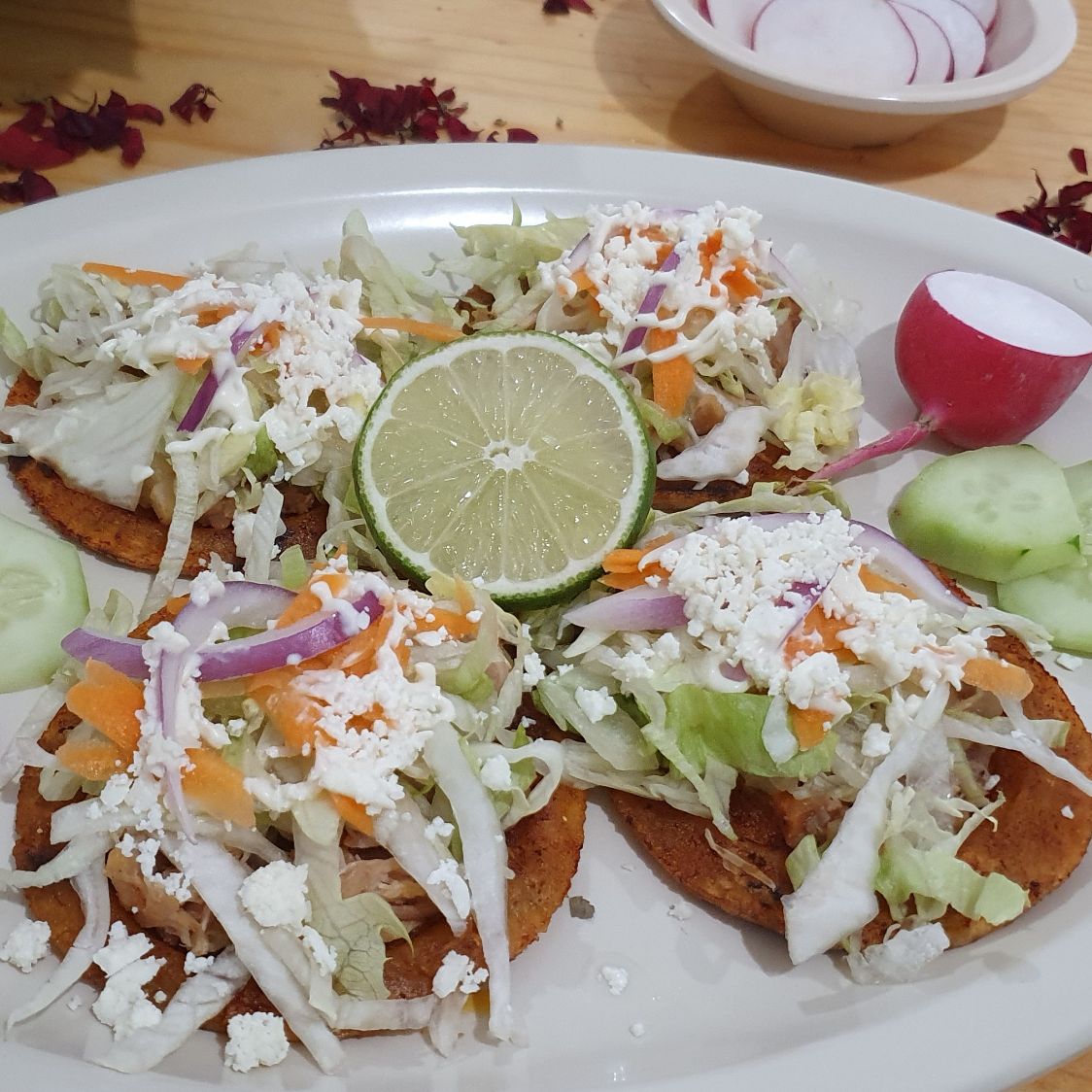 4 tacos dorados, 3 enchiladas, 4 sopes.