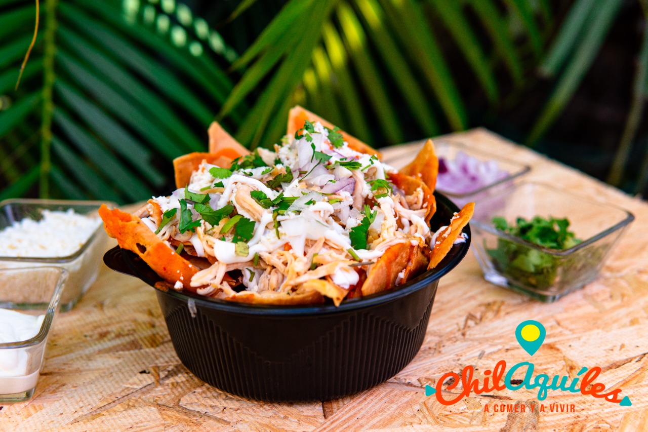 Una generosa porción (aprox. 25 a 30oz) de crujientes totopos bañados en la salsa de tu elección, acompañados de una capa suave de frijoles. Deliciosa pechuga de pollo desmenuzada, queso fresco, crema, cilantro fresco y cebolla se mezclan perfectamente para crear una explosión de sabores. Acompañado de una salsa chilena que añade el toque perfecto de picante. El empaque puede variar, pero l