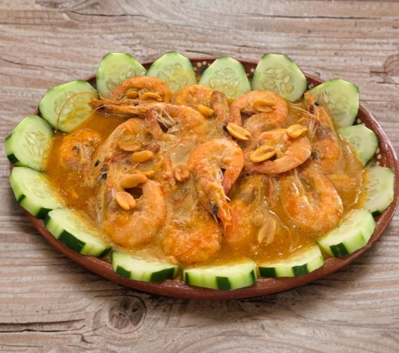 Camarones en salsa de cacahuate y mezcla de chiles