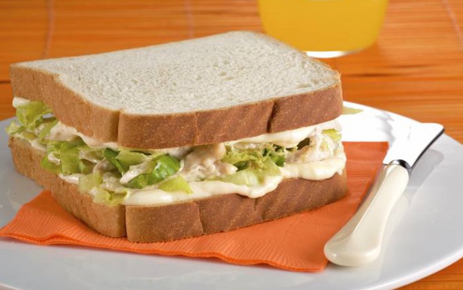 Pan integral con pollo, jitomate, cebolla y lechuga.