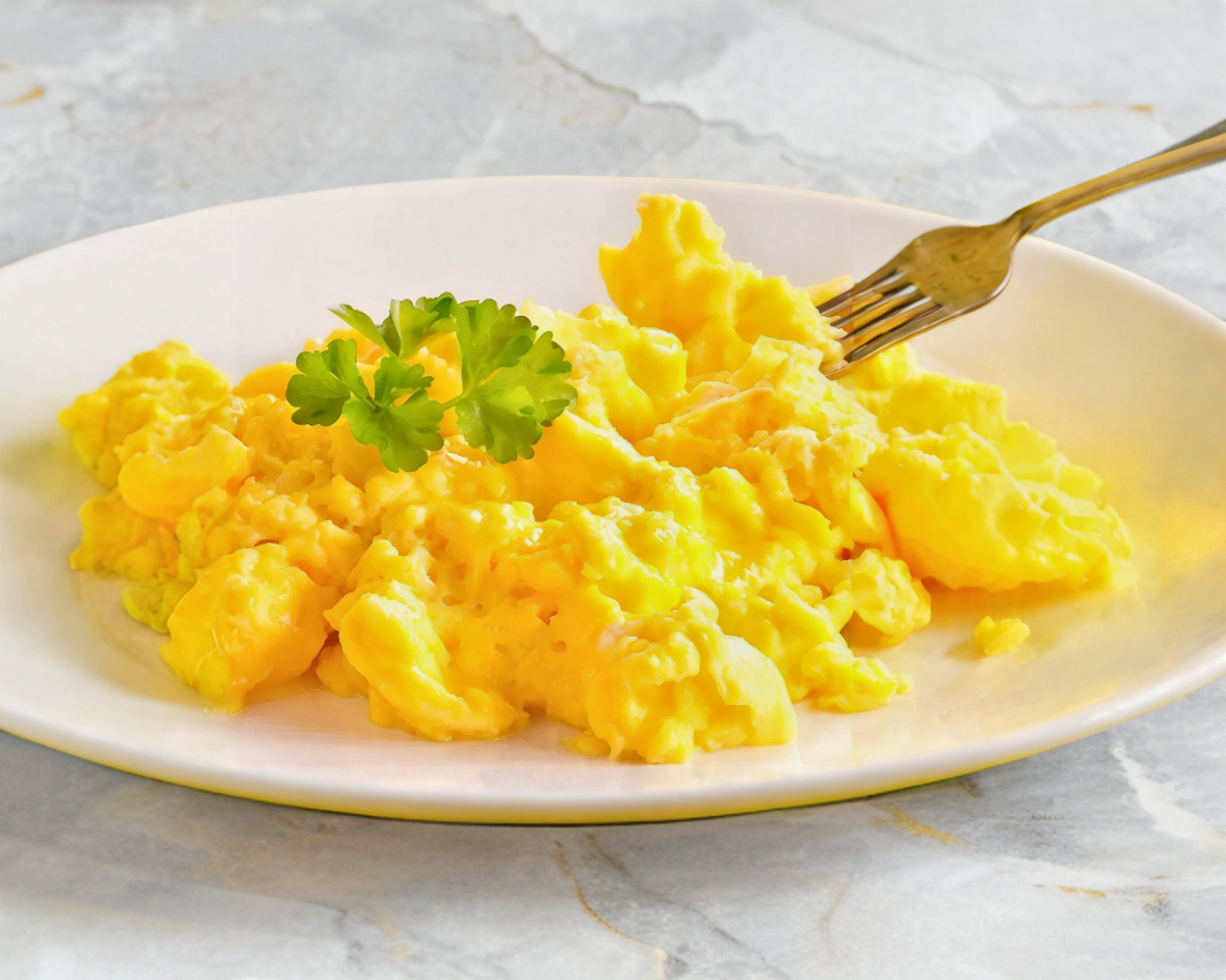 3 huevos con tocino, queso para fundir, ensalada de lechuga y frijoles.
